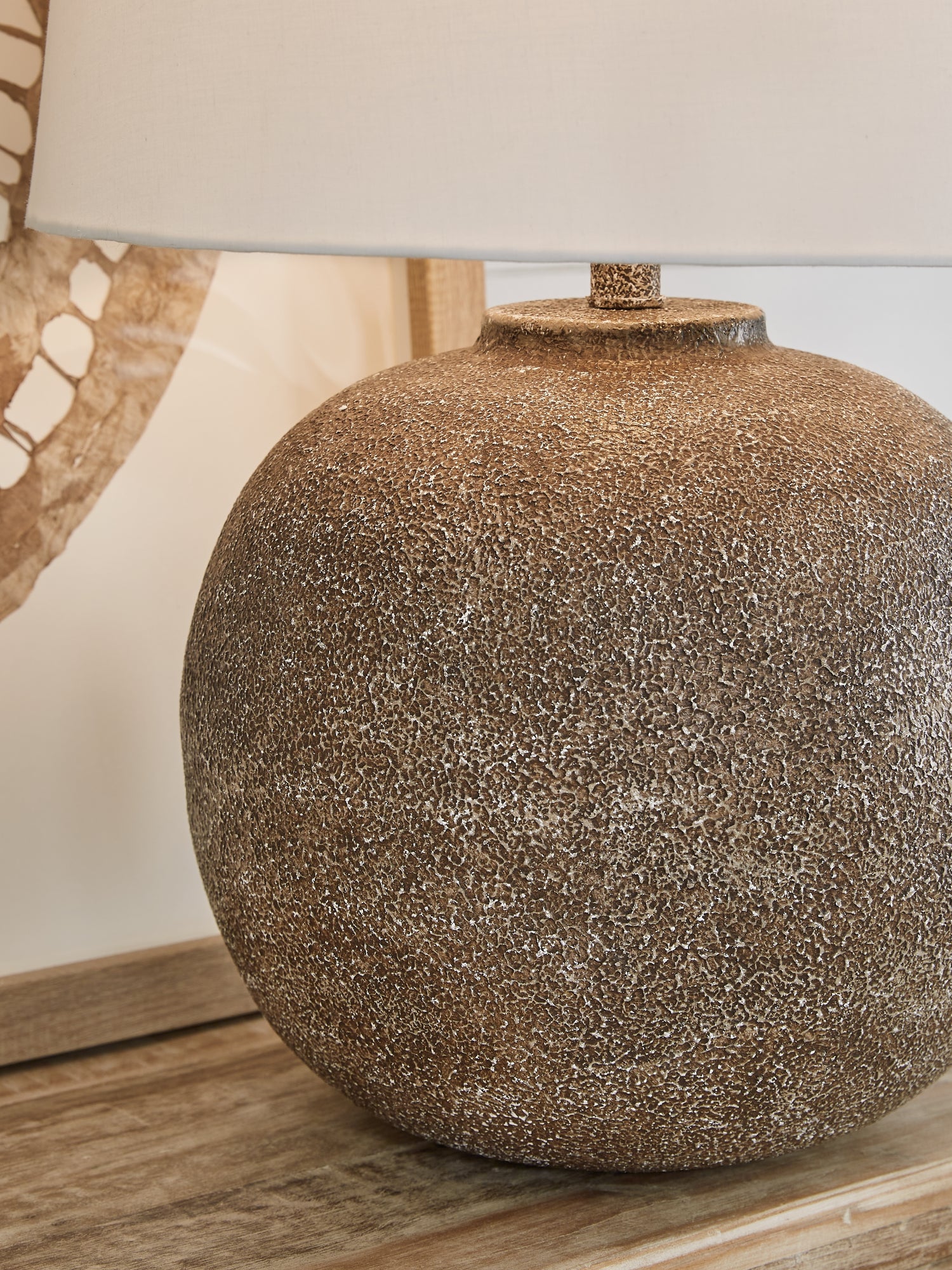 Combining premium quality materials with unique high-style design, this table lamp brings a touch of easy artisan texture to a room. Color variations throughout add an almost antique feel and make each piece unique.