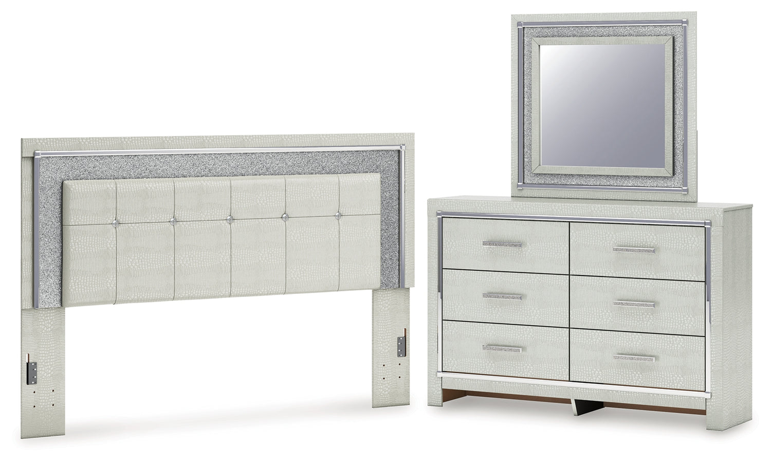 Zyniden King Upholstered Panel Headboard, Dresser and Mirror - King Upholstered Panel Headboard, Dresser and Mirror / Silver is backordered and will ship as soon as it is back in stock.